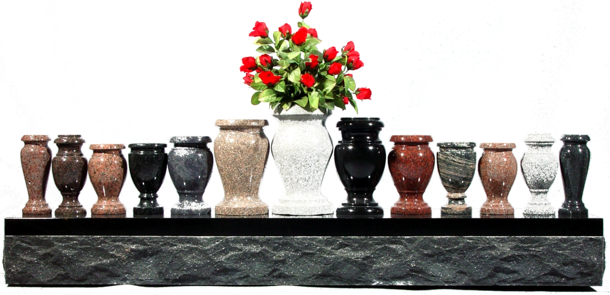 Classic lines, beauty, and dignity of the monument and roses are enhanced by the lovely flower vases.