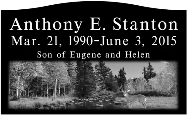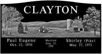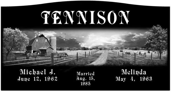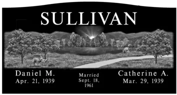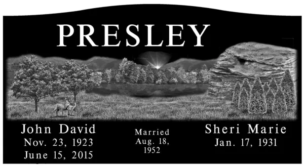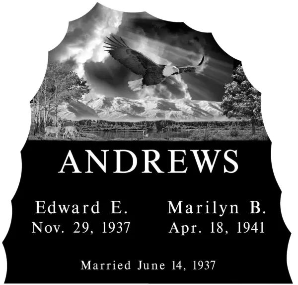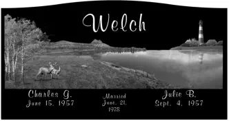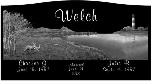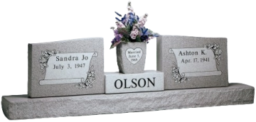 We have many different shapes and styles of monuments to choose from. Shown are just a few of the styles and designs from which you may choose. We also have a vast selection of etching designs for your marker or monument. Take a look at these pristine etchings for your loved one. Click on a photo to view details in a larger size.